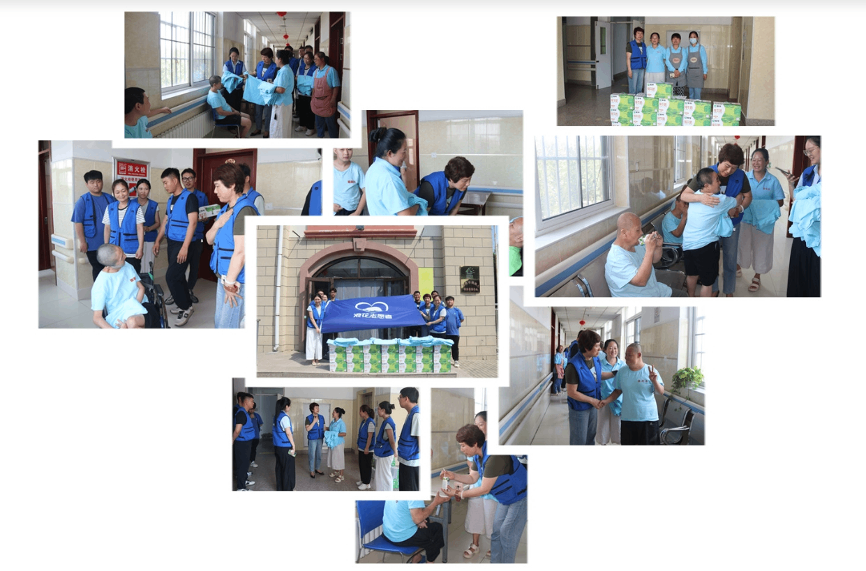 7月18日上午,,,,根据集团公益工作部署,,,,集团董事张爱英总亲自带队,,携纽福斯生物浪花志愿者团队一行13人,,带着全体纽福斯生物人的亲切慰问,,,来到莱西社会福利院进行公益帮扶活动。。。浪花志愿者们看望了福利院的老人、、孤儿和